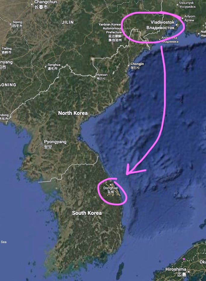 Llego al puerto de Donghae, en Corea, desde Vladivostok, Rusia. Uno de los países más cerrados y duros del mundo —aunque cuando estás allí no lo parece para nada— y, de repente, Corea: uno de los países más fáciles y amables que existen. Dos mundos opuestos separados por 24 horas de ferry.